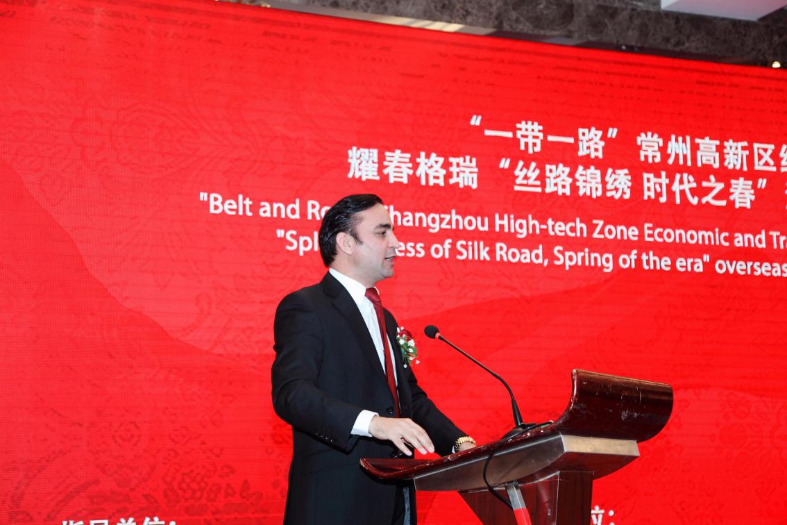 图1:巴基斯坦、HBK GROUP公司的Mr.Maroof在“一带一路”常州高新区经贸推进会上发言