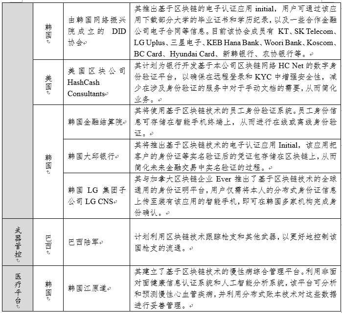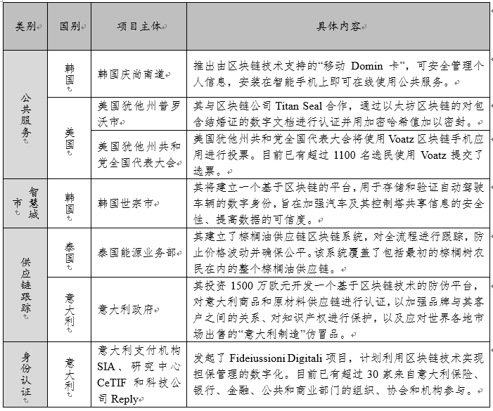 根据公开信息,梳理了近期区块链技术的相关应用项目,见下表: