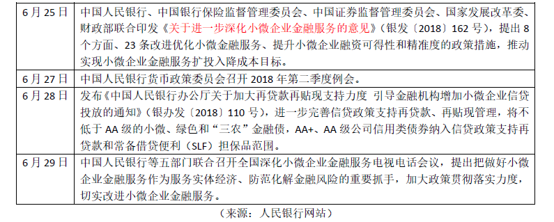 2. 2018年8月24日,人民银行发布了《2018年第二季度中国货币政策大事记》,本公众号将主要内容整理如表1所示。