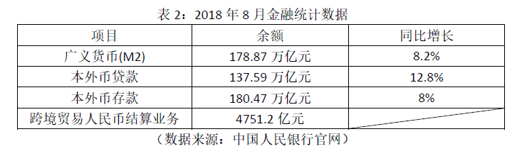 2. 2018年9月12日,中国人民银行发布了2018年8月的金融统计数据,具体如表2所示。