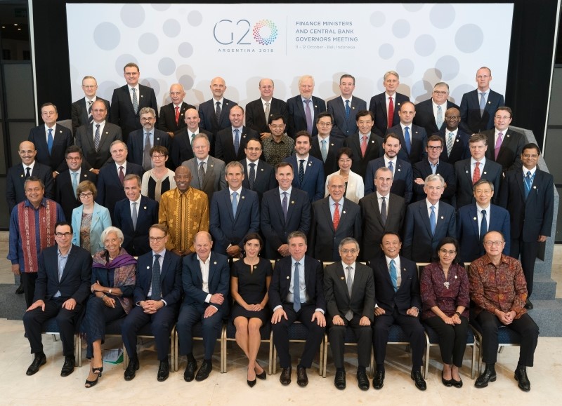 2. 2018年10月11日至12日,易纲行长、陈雨露副行长出席了在印度尼西亚巴厘岛举行的二十国集团(G20)财长和央行行长会议。会议主要讨论了全球经济形势与风险、国际金融架构、基础设施融资和加强与非洲合作(Compact with Africa)等议题。