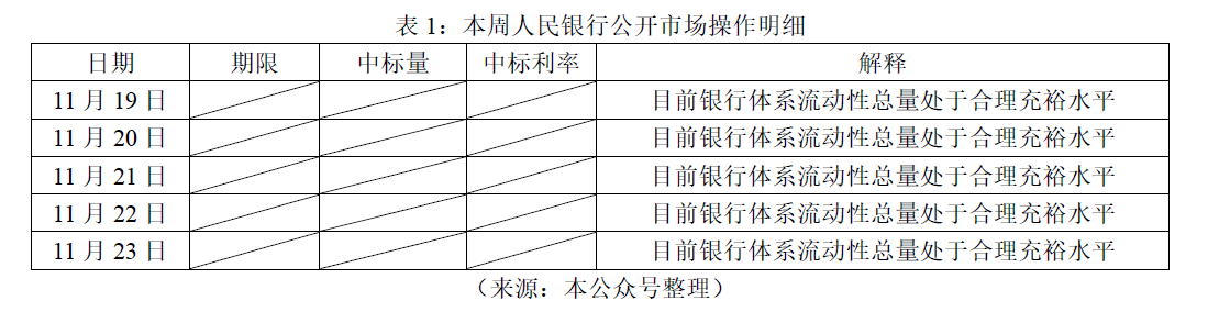3.2018年11月19日到11月23日,人民银行未进行公开市场业务操作,具体表1所示。