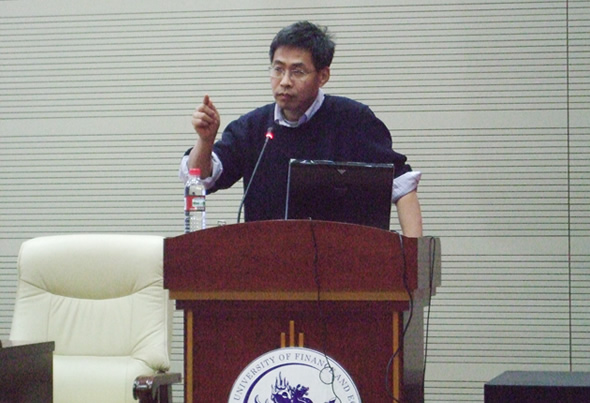 此次讲座,祈斌教授主要讲了两个方面的内容,一是全球化时代的国际金融格局,二是中国经济的转型。在第一部分中,祈斌教授幽默风趣的从投行模式激进转型、金融创新及信用消费急剧增加等三个方面分析了国际金融格局的现状。他认为当今时代金融危机是频繁的,但金融市场始终是现代经济的锋刃,经济的发展需要金融市场尤其是资本市场的推动。在第二部分中,祈斌教授认为中国经济的进一步发展需要改革经济体制,尤其是要改革金融体系,具体包括发展资本市场和改革商业银行。祈斌教授分析了中国资本市场的发展现状及前景,指出资本市场是当今时代最重要的经济文化,良好的经济、金融体制对我国未来经济发展具有巨大的作用。