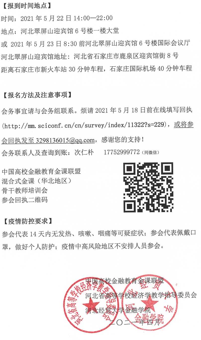 邀请函:首届中国高校金融教育金课联盟混合式金课(华北地区)骨干教师培训会426.pdf