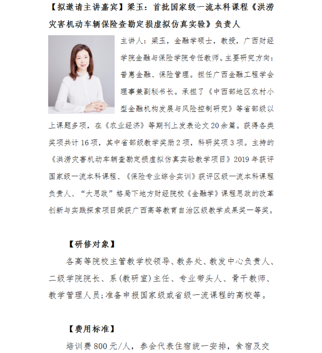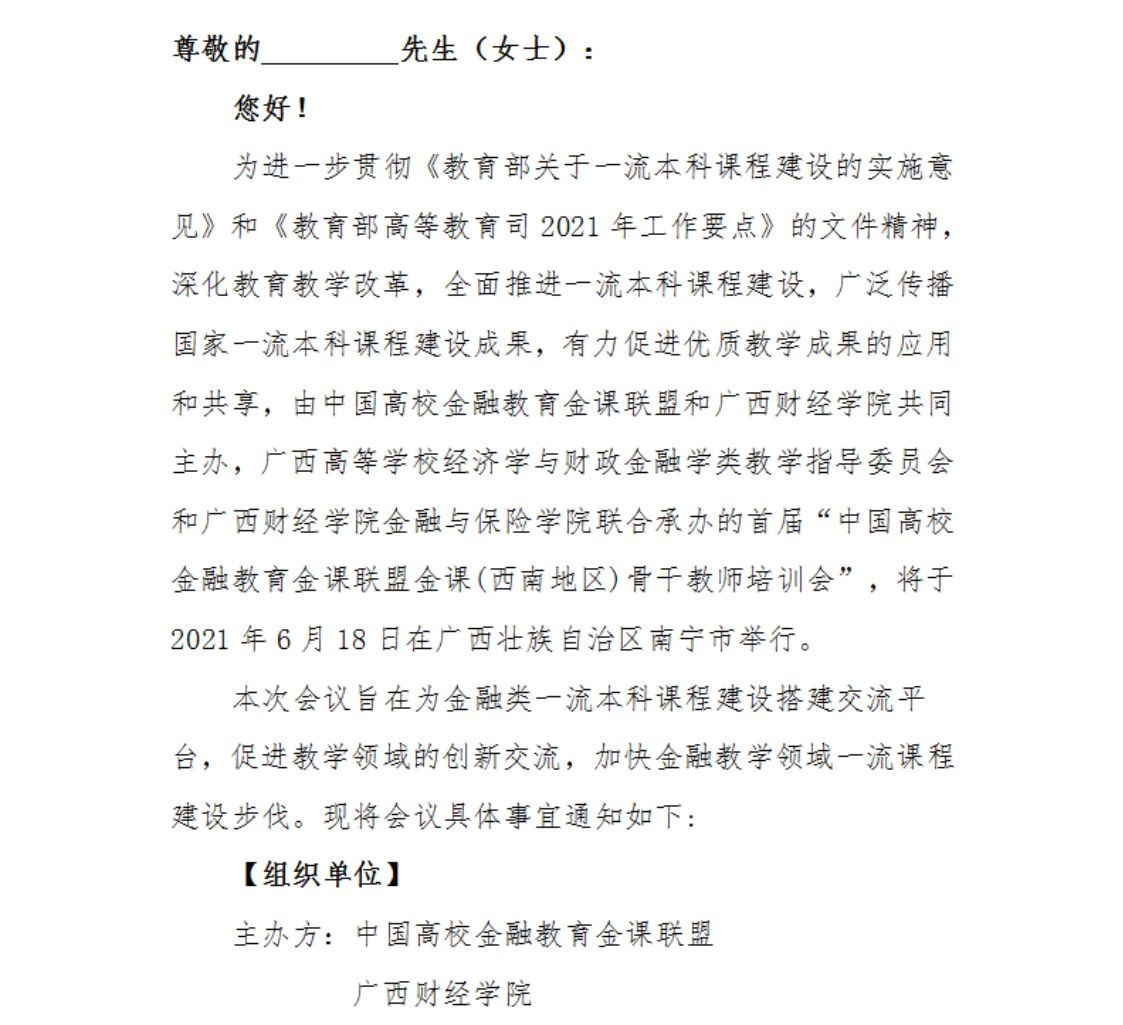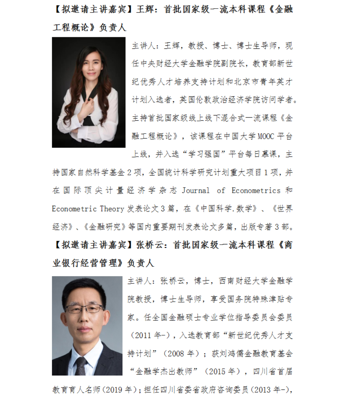 “中国高校金融教育金课联盟金融科技专业本科一流课程骨干教师研修班”邀请函
