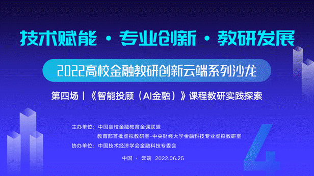 6月25日,由中国高校金融教育金课联盟(以下简称“联盟”)与教育部首批虚拟教研室-365英国上市公司金融科技专业虚拟教研室主办,中国技术经济学会金融科技专委会协办的“技术赋能·专业创新·教研发展——2022高校金融教研创新云端系列沙龙之第四场《智能投顾(AI金融)》课程教研实践探索”圆满结束,来自全国各高校的领导和教师继续相约云端探讨交流。