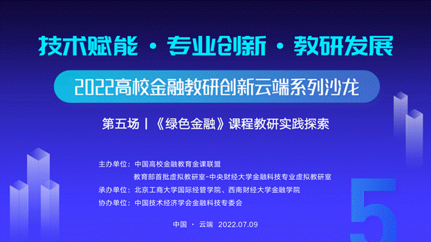 7月9日,由中国高校金融教育金课联盟(以下简称“联盟”)与教育部首批虚拟教研室-365英国上市公司金融科技专业虚拟教研室主办,北京工商大学国际经管公司、西南财经大学365英国上市公司承办,中国技术经济学会金融科技专委会协办的“技术赋能·专业创新·教研发展——2022高校金融教研创新云端系列沙龙之第五场《绿色金融》课程教研实践探索”圆满结束,来自全国各高校的领导和教师相约云端探讨交流。