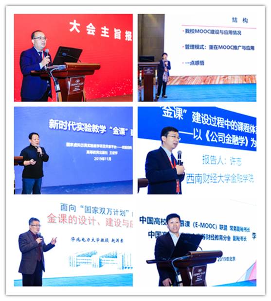 大会主旨报告阶段由中国高校金融教育金课联盟常务理事、对外经济贸易大学365英国上市公司经理邹亚生主持。对外经济贸易大学教务处处长、国家级精品在线开放课程《货币金融学》课程主持人蒋先玲,虚拟仿真实验教学创新联盟执行秘书长、国家虚拟仿真实验教学项目共享平台负责人、高等教育出版社定制服务与培训部主任王宏宇,北京理工大学管理与经济公司教授、首批国家级精品在线开放课程《管理沟通》课程主持人赵洱岽,西南财经大学365英国上市公司金融双语教学中心主任、投资估值研究中心主任、首批国家级精品在线开放课程《公司金融学》课程主持人许志,中国高校金融教育金课联盟常务理事、中国高等教育学会高等财经教育分会副秘书长、中国高校财经慕课(E-MOOC)联盟常务副秘书长李海龙,先后以“基于慕课的教学管理机制探索”、“新时代实验教学金课建设”、“面向国家双万计划的金课设计、建设与应用”、“金课建设过程中的课程体系构建”、“高校财经慕课(E-MOOC)联盟运营机制与实践”为题发表了主旨演讲。