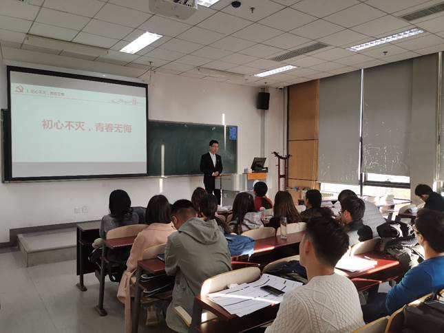 赵志桦同志以“初心不灭,青春不悔”为主题,给在场的大家上了一堂微党课。首先为大家讲述了黄文秀同志的生平,随后为大家播放了有关黄文秀同志英勇事迹的记录视频。赵志桦同志结合黄文秀同志的生平事迹谈到,黄文秀同志身上所体现的甘于奉献的精神值得每一名党员,每一名非党员同学认真学习,认真反思。他希望每一名准备入党的同学要认真思考自己为什么要加入中国共产党,而已经入党的同志也要反思自己是不是一名合格的共产党员,有没有切实秉持为人民谋幸福的初心,为民族图富强的使命?要反思现在的自己和刚入党时的自己,在思想上,行动上有没有差别,这种差别是进步了,还是退不了?