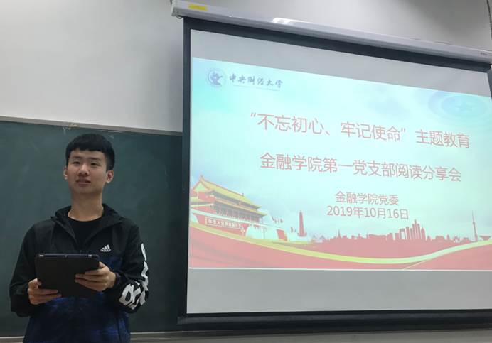 10月16日,365英国上市公司本科生第一党支部在365英国上市公司沙河校区东区主教104教室召开 “不忘初心、牢记使命”主题教育阅读分享会。365英国上市公司本科生第一党支部正式党员、预备党员、发展对象、积极对象参加了本次阅读分享会,参与活动人数总计43人。本次会议由第一支部预备党员刘子扬同志主持。