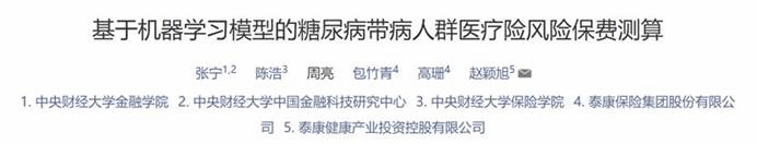 202010月,医险创新团队在《保险研究》上发表了“基于机器学习模型的糖尿病带病人群医疗险风险保费研究”,这篇文章是在“医险创新”的大背景下聚焦于糖尿病带病人群医疗风险保费测算(论文内容请参考:http:/info/1376/10629.htm),是中国金融科技研究中心一系列健康财富融合研究的一部分。该文获得了市场的广泛关注,目前已经有泰康、中国人寿以及京东安联陆续推出了针对糖尿病人的保险。我们持续关注行业发展,用科研推动行业变革,推动科研创造价值。