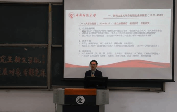 课程伊始,李建军经理指出建党百年的时代背景下,作为金融学子,理应牢记党领导金融工作的百年历史 ,立足新起点,开启新征程。随后,他带领同学们系统全面回顾了1921年-2021年百年以来中国共产党领导下的金融事业的发展历程,并将百年金融探索历程划分为新民主主义革命时期的金融探索(1921-1949)、社会主义革命和建设时期集中资源型金融体制设计(1949-1978)、社会主义市场经济下的金融改革开放与深化发展(1979-2011)和中国特色社会主义新时代金融治理现代化选择(2012-2021)四个阶段,逐一阐述各个阶段的金融思想与实践,让同学们对中国金融百年发展的整体脉络有了更深刻的认识。