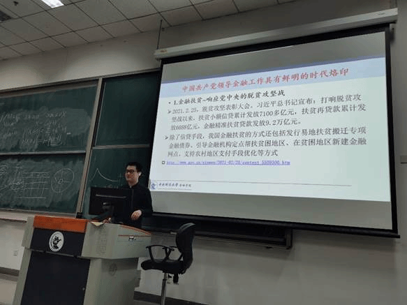 讲座第三部分:中国共产党领导金融工作具有鲜明的时代烙印由李沁傲主讲,李沁傲着重分析了金融扶贫和金融反腐的例子。中国共产党领导金融工作时紧跟时代,利用金融扶贫的方式响应党中央的脱贫攻坚战。在金融反腐方面,从现实案例中,理解了习近平总书记“一体推进惩治金融腐败和防控金融风险”的要求。最后,李沁傲对讲座中的三个部分进行总结,利用表格形式对中国共产党领导下的金融工作和外国政府治理下的金融领域进行了对比,体检了中国共产党领导的先进性。
