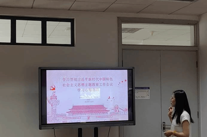 在学习心得体会分享环节。王彦一同志基于习近平总书记在学习贯彻习近平新时代中国特色社会主义思想主题教育工作会议上所发表重要讲话内容,从主题教育的重要意义和努力方向展开陈述与介绍。白茹雪同志注重参考了《经济研究》2022年12期的文章“碳中和背景下的中国经济低碳转型:特征事实与机制分析”,对我国目前碳中和的成绩与面临的挑战加以阐释。